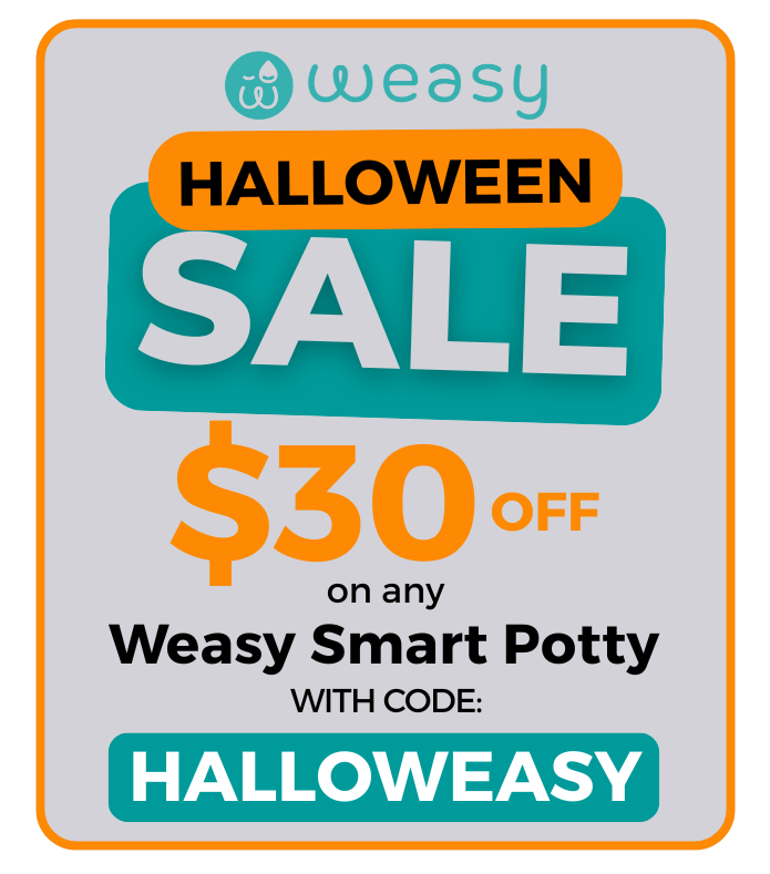image of a golden retriever  sitting on the Weasy Smart Potty size large on the floor.